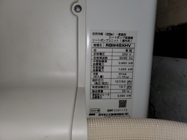 日光市 ダイキン自然冷媒CO2家庭用ヒートポンプ給湯機ヒートポンプユニットRQW45XHV、貯湯ユニットTU37XFHV エコキュート交換工事