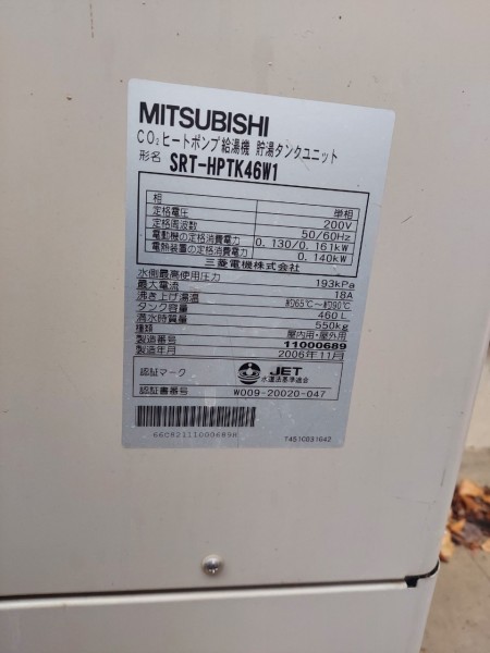 日光市 三菱電機エコキュート→三菱電機自然冷媒CO2家庭用ヒートポンプ給湯機貯湯ユニットSRT-STK376D、ヒートポンプユニット エコキュート交換工事