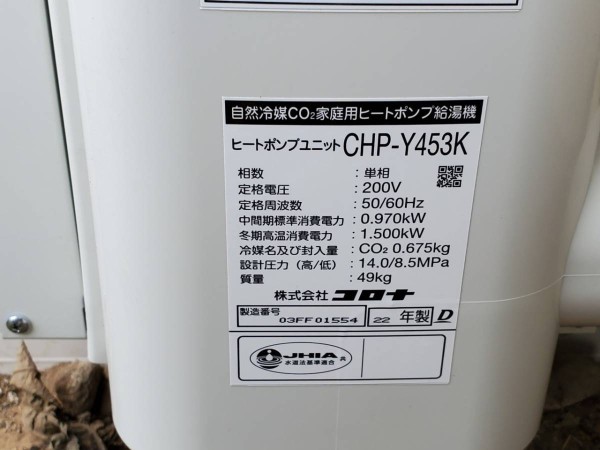 大田原市 コロナ自然冷媒CO2家庭用ヒートポンプ給湯機 貯湯ユニットCTU-E37AY4K、ヒートポンプユニットCHP-Y453K 給湯器交換工事